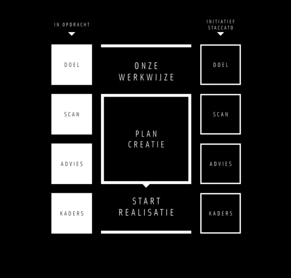 Aan de hand van de uitwerkingkaders zal Staccato in overleg met u en de stakeholders een plan creëren en eventueel de benodigde derden hierbij betrekken. Het uitwerkingsniveau van het plan is sterk afhankelijk van de doelstellingen en de te informeren betrokken partijen. Hierbij is Staccato uw strategisch adviserende partner.